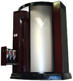 The UV free spray tanning booth pictured here is the California Tan Autobronzer model which introduces a new look and feel as well as different technology in sunless tanning.  We are not quite sure they are still in production.  There are a few on the secondary market but parts and supplies may be difficult to find.