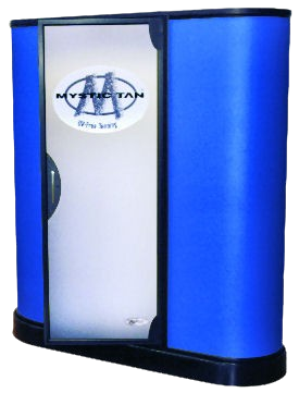 The Mystic Tan HD model is the most recent booth sold under the Mystic Tan brand.  This booth features a heater and blow dryer which allows the customer to immediately put their clothes on without threat of staining.  Using the same outer shell and personal single use cartridge system as the MyMyst model, Mystic Tan HD added a splash of color and a lot of heat to vastly improve the sunless experience.